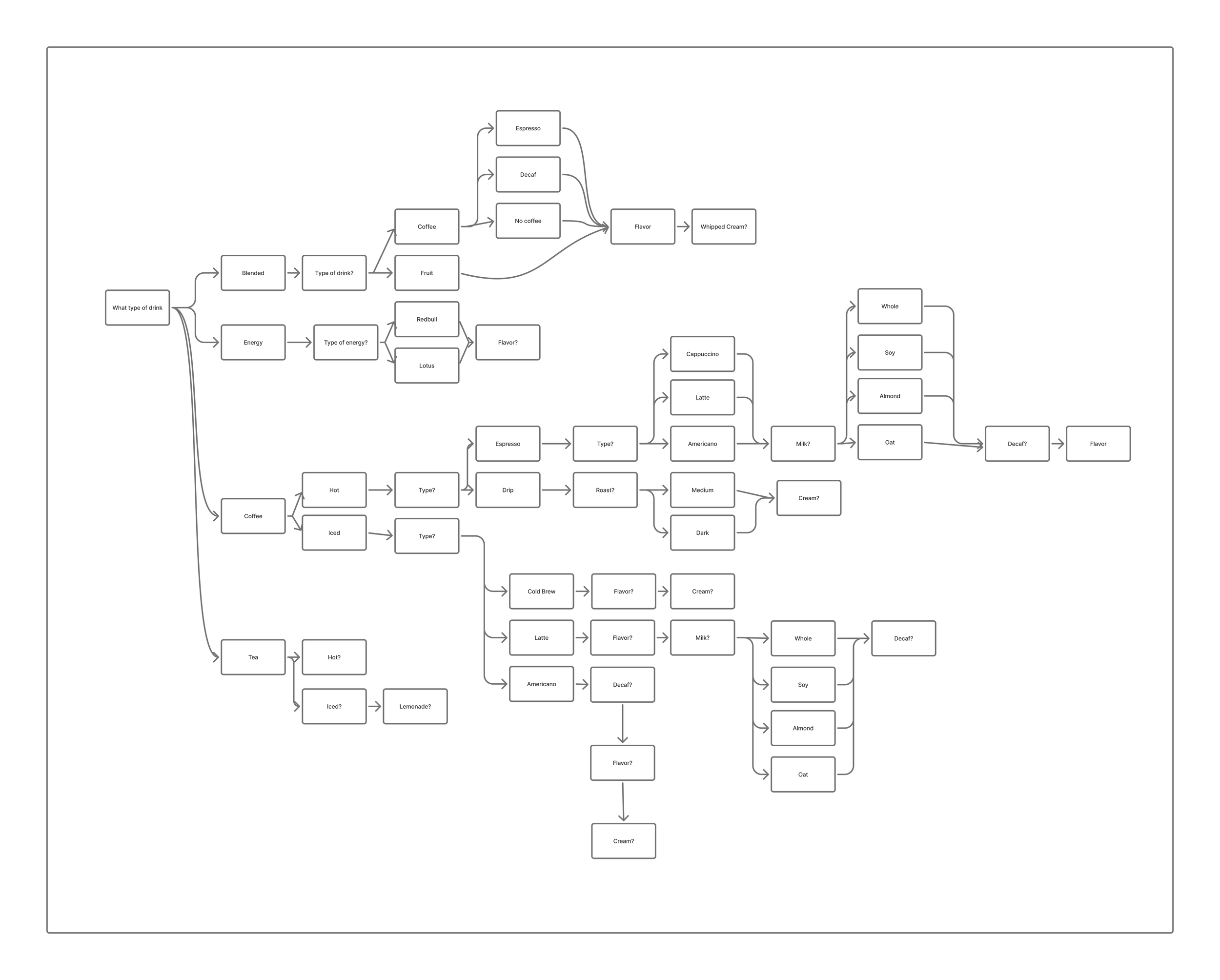 My employer wanted to explore ways to implement artificial intelligence into the coffee feature so I built out a user journey map for brainstorming various implementation ideas.